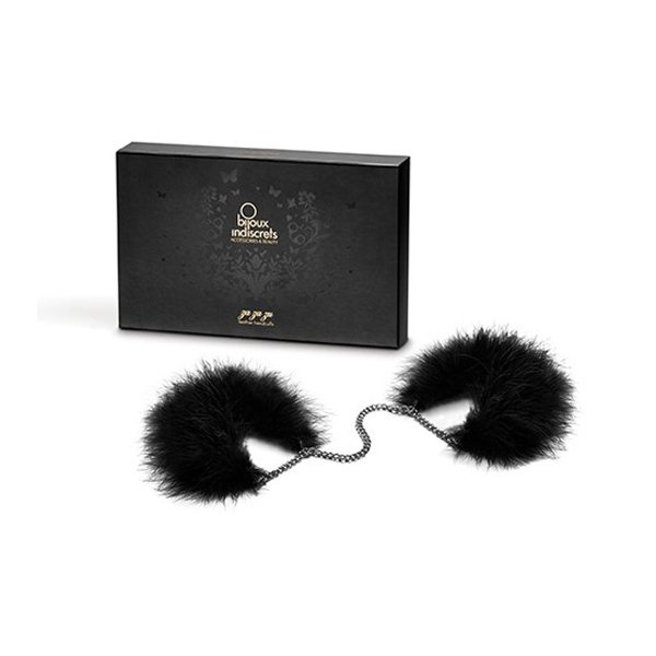 Ce sont des menottes en plumes de luxe fabriquées par Bijoux pour les jeux de domination les plus sensuels.