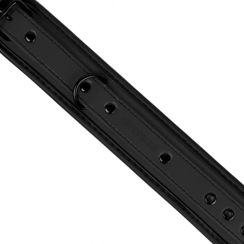 Menottes pour les chevilles en cuir végétalien et néoprène. Attachées par une chaîne à mousquetons, elles sont à la fois durables et confortables. Un système de fermeture à boucle permet à chaque menotte de s'adapter au millimètre près autour des chevilles, ne laissant aucune chance à votre partenaire de s'échapper.