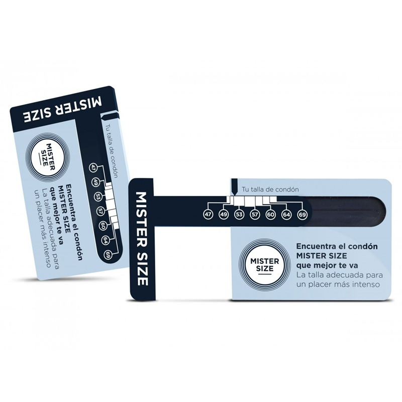 Cette carte de mesure du pénis comporte 7 indicateurs de taille de préservatif qui correspondent aux 7 modèles du catalogue de la marque Mister Size. Elle est conçue pour que vous puissiez profiter de la meilleure expérience sexuelle possible sans que le confort soit une limitation.
