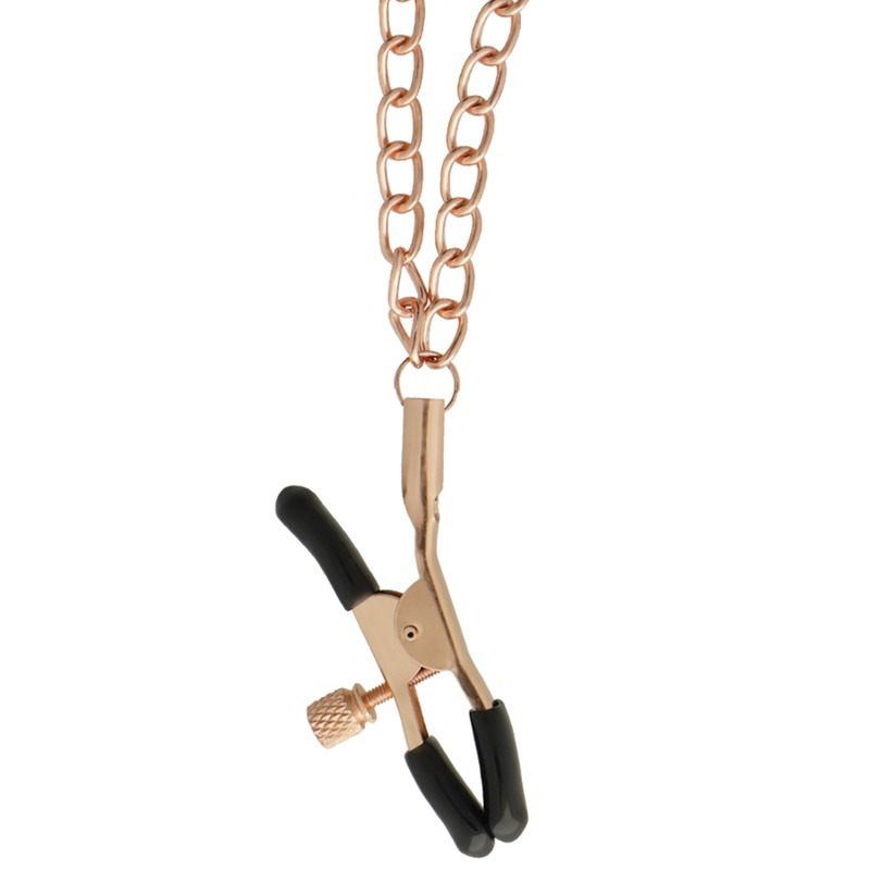 Au-delà de l'image, il y a aussi le plaisir. Ces pinces à tétons en métal sont conçues pour vous offrir une stimulation intense. La double chaîne ajoute du poids et de la pression à ces pinces réglables.