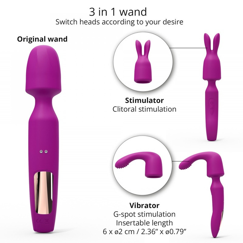 Il vous suffit de choisir un rythme de mouvement et une texture. En plus de l'embout fixe, vous disposez de deux autres capuchons interchangeables, l'un avec des petites oreilles et l'autre avec une silhouette incurvée et des textures.