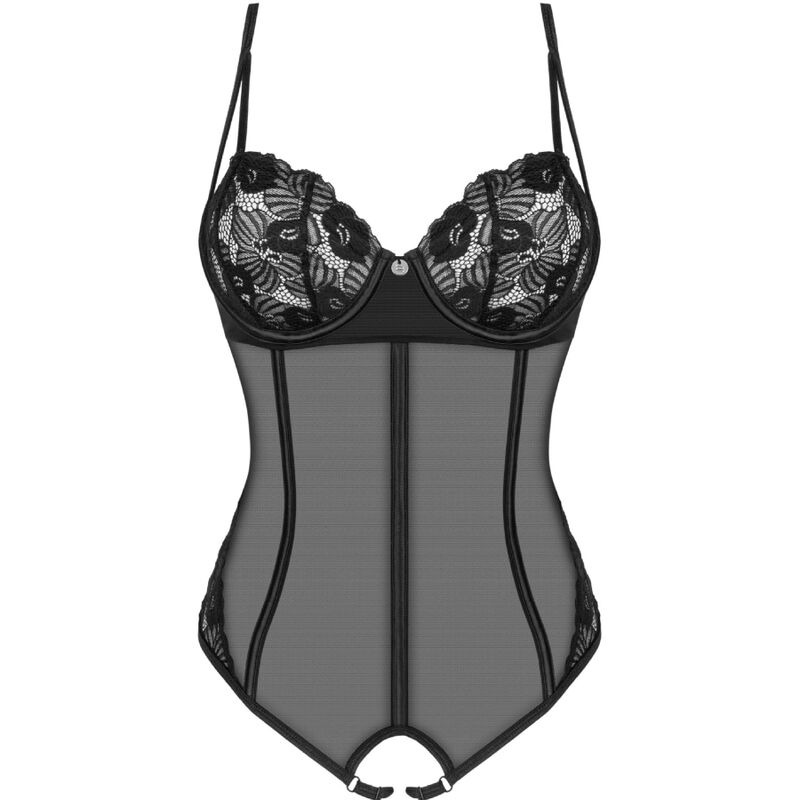 Ce teddy noir sensuel ajoutera une touche de glamour à vos nuits. Il s'agit d'un vêtement de lingerie au design élégant qui allie avec originalité tissu semi-transparent et dentelle.
